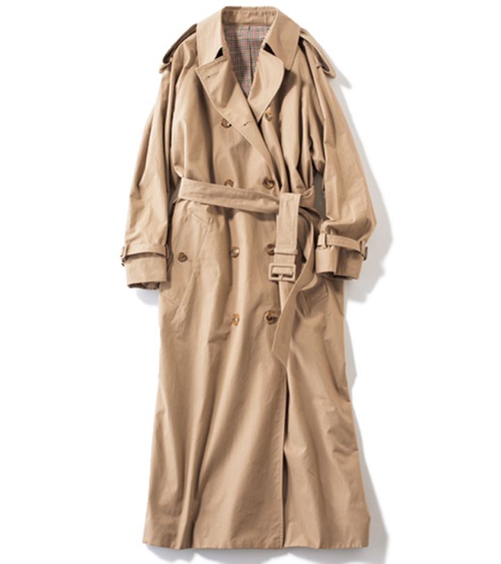 トラッドを体現するのに欠かせない。今年は、ドロップショルダーと長め丈のものを。トレンチコート¥54,000(ラヴァンチュール マルティニーク)