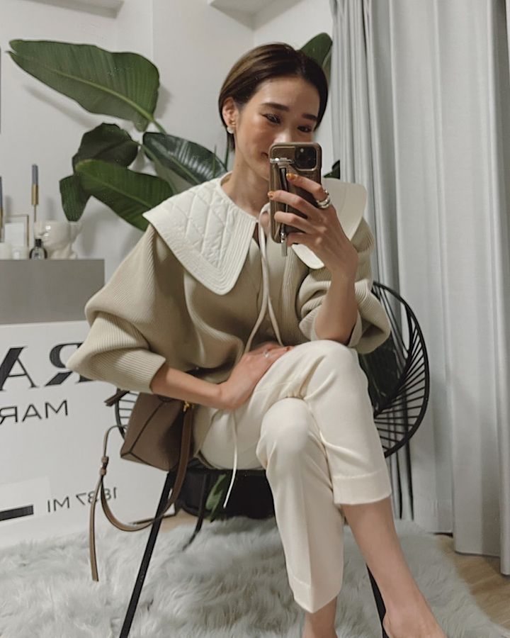 cardigan:MACHATT collar:MACHATT pants:gypsophila bag:LOEWE