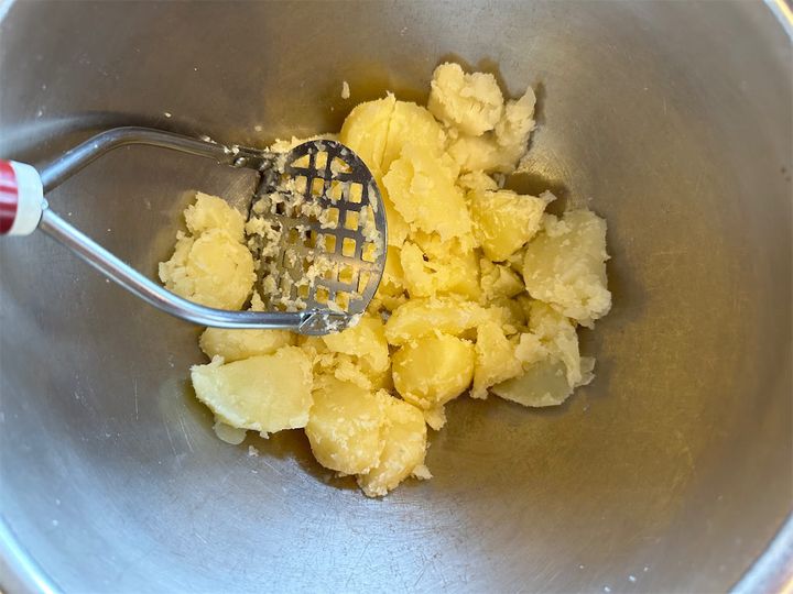 1.じゃがいもは加熱し、軟らかくなったら粗く潰す。