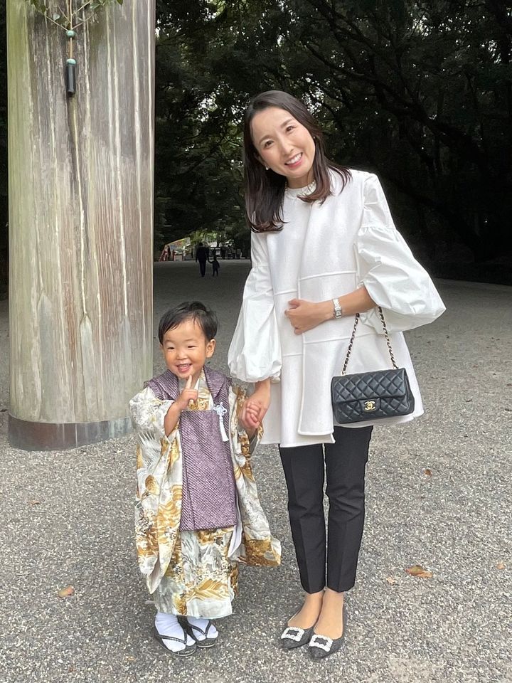 「前撮りは和装だったので、お詣りの日は動きやすさを重視して洋装に。お詣り後は両親と食事の約束があり、着物のままだと汚さないか心配だったのも理由のひとつです。子どもが主役の日なので、モノトーンでまとめて着物姿の息子が映えるよう意識しました」山上里菜さん・34歳/158㎝(4歳の男の子ママ)
