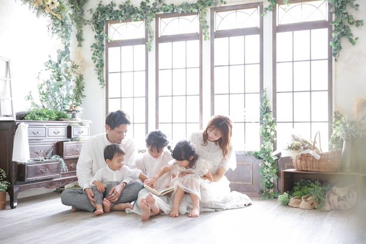 \7月の前撮りで洋装/ 和装以外も借りられるスタジオで 家族お揃いコーデができました