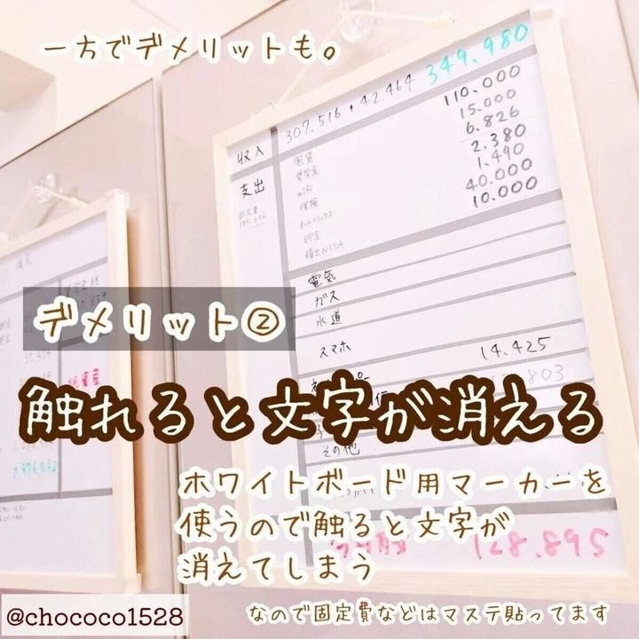 ホワイトボードの活用術はさまざまありますが、家計簿に使うのも大いにメリットがあると私は思います。