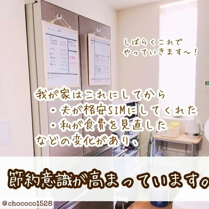 冷蔵庫から飲み物をとるとき、キッチンで洗い物をしているとき、電子レンジを待つ間など、気づいたら「他と比べて支出の多いこの項目をどうやったら減らしていけるか」と考えています。ホワイトボード家計簿によって、無意識に家計について考える環境づくりに成功しました。