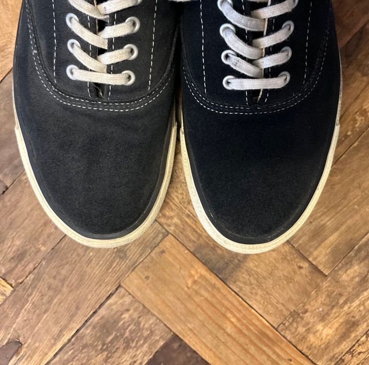 スニーカーは汚れても気にしない人もいますが、ファッションとして考えるならやっぱりお手入れは必要です。そもそもスニーカーはカジュアルなアイテムなので、汚れていると革靴やスエード靴以上にスタイリングに影響すると思うから。とくに筆者が気になるのが、アウトソールとアッパーをつなぐ外側に一周巻かれているフォクシングテープ部分。歩き方が悪いのか、アッパーよりその汚れが気になるんですよね。