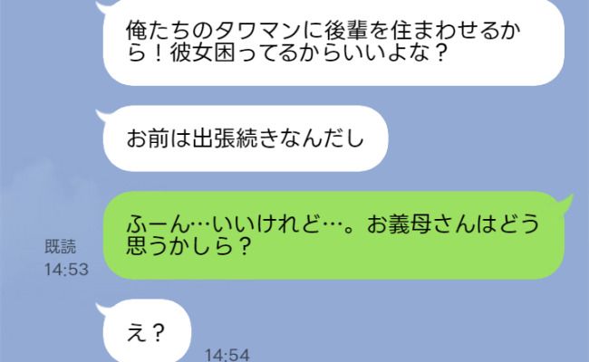 「ねぇ、まだ後輩さんうちに居座ってるの?」「早く追い出してほしいんだけど」と出張先から夫に連絡した私。すると、「そんな意地悪言わないでくれよ」「彼女、仕事はできるけどプライベートは散々で、借金もあるみたいなんだ」「部屋も余ってるし、もうしばらく置いてあげてもいいだろう?」と夫は主張してきたのです。