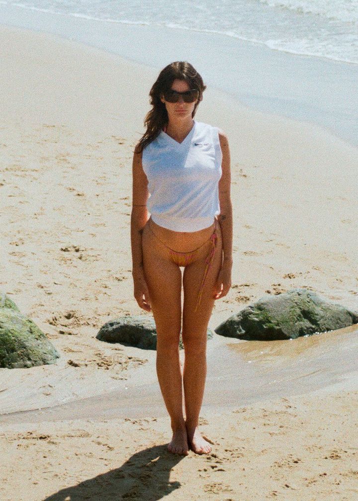 top by SPORTY & RICH, swimsuit by PERSO, vintage sunglasses by DOLCE&GABBANA