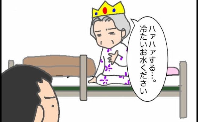 夫が部屋を去るときに、今度はかき氷を要求。仕方なく、夫は出勤前の忙しい時間に義母へかき氷を届けたのでした。