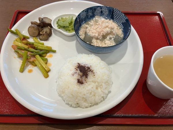 豚しゃぶのお肉が柔らかく、彩りもよいメニューでどの副菜も美味しかったです。特になすの焼き浸しは味が染みていて最高でした。