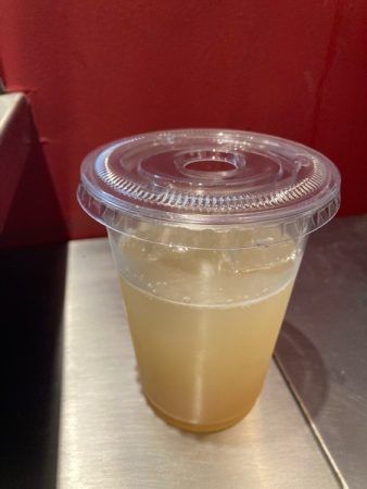 梨ジュース(炭酸割)300円(テイクアウトの容器)