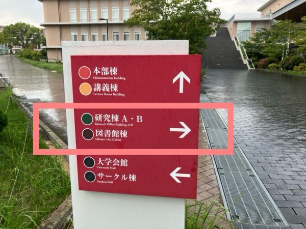 ↓この案内図まで来たら、右側に図書館棟の入口がありますよ。