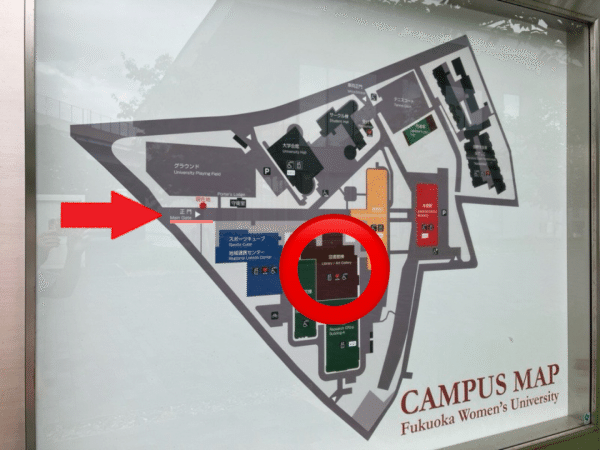 正門を入って左側の、キャンパスマップ