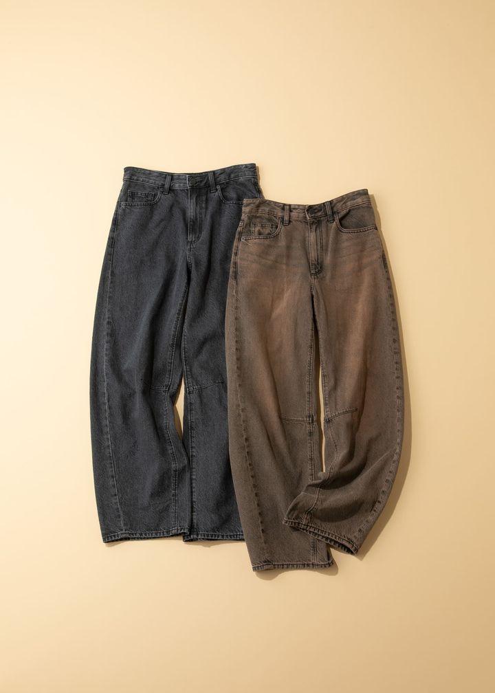 膝からワイドに広がり、裾に向けて細くなった立体的なシルエットが、スタイリッシュでありながらリラックスした雰囲気を醸し出すジーンズ。腰回りをタイトに見せてくれるので体型カバーも◎。表面のウォッシュ加工がさらに美脚効果大!カラーはネイビー、ヴィンテージ感のあるブルー、薄いブルー、ダークグレーに加えて秋っぽさを感じるブラウンの 5色展開。この価格なら、ぜひイロチ買いもおすすめです。