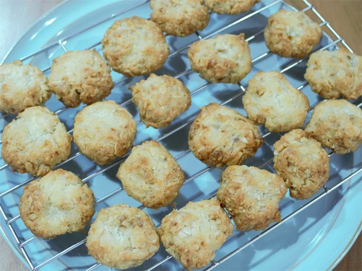 5.4を20等分にし丸め、予熱した160℃のオーブンで25分~30分焼く。この時、焦げ目が付きそうならアルミホイルをかけて焼く。
