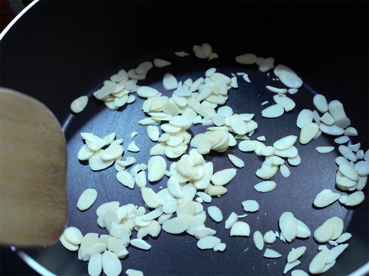 アーモンドは、サクサクっと軽い歯ざわりに仕上げるため、スライスしたものを使いました。
