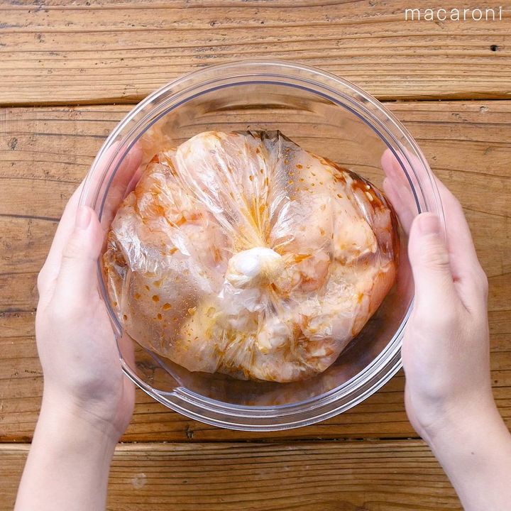 2: 【調味料】を加えてさらにもみこみ、1時間ほど漬け込みます。