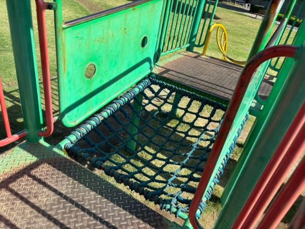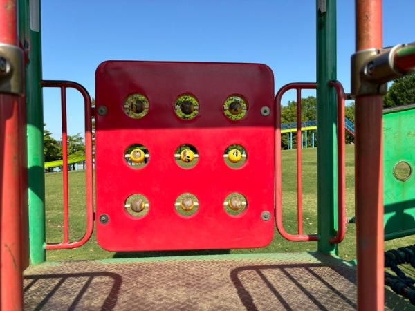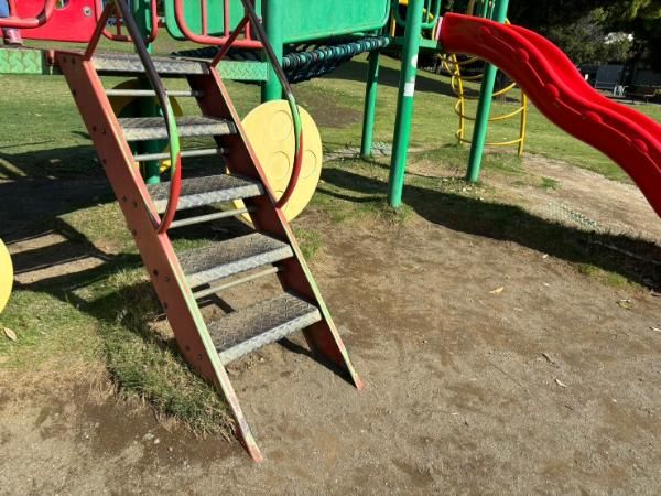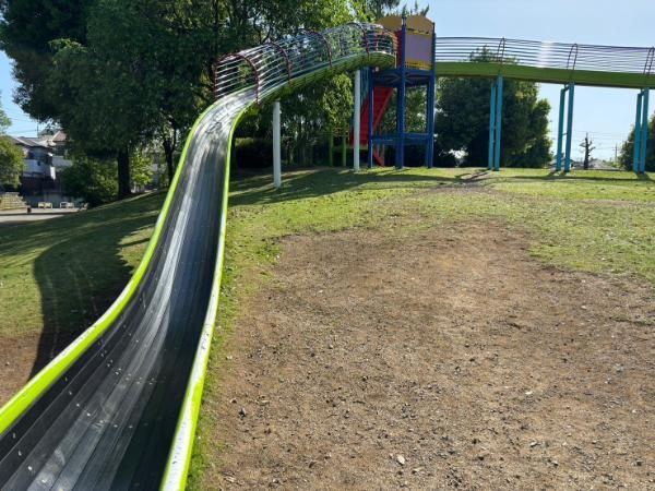 写真手前の方がグリッサンドすべり台で、奥の方がローラーすべり台です。この配置なので、年齢層の違う子供を一人で見守らなければならないシチュエーションでも目が届きやすそうです。