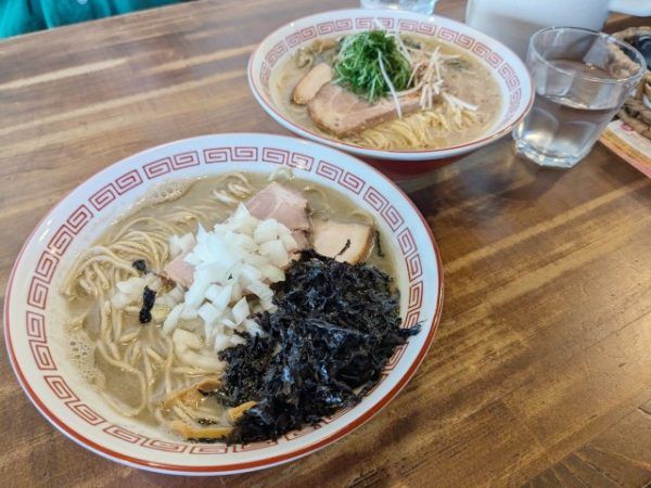 注文したのは「煮干しラーメン」(写真手前)と「牡蠣の味噌そば」(奥)。