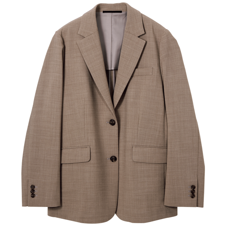 ダークトーンの服が多くなる秋冬に映えるニュートラルなベージュカラー。ジャケット¥57,200(エーピー ストゥディオ/エーピー ストゥディオ ニュウマン シンジュク)