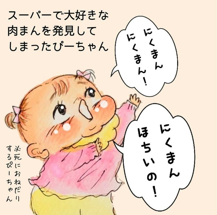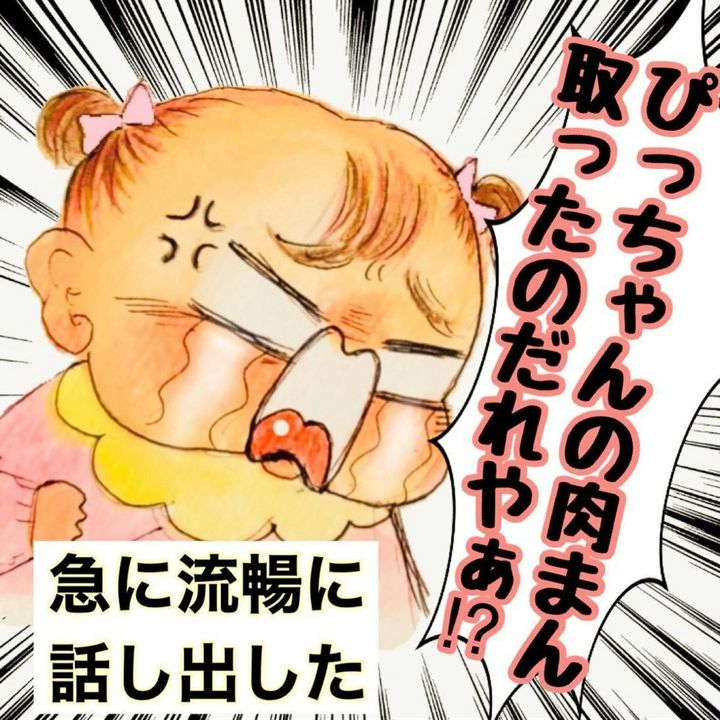 ぴーちゃんにとって、大好きな肉まんが無くなるのは非常事態だったのですね。いきなりの流ちょうな発音に、ママはきっと驚いたことでしょう。