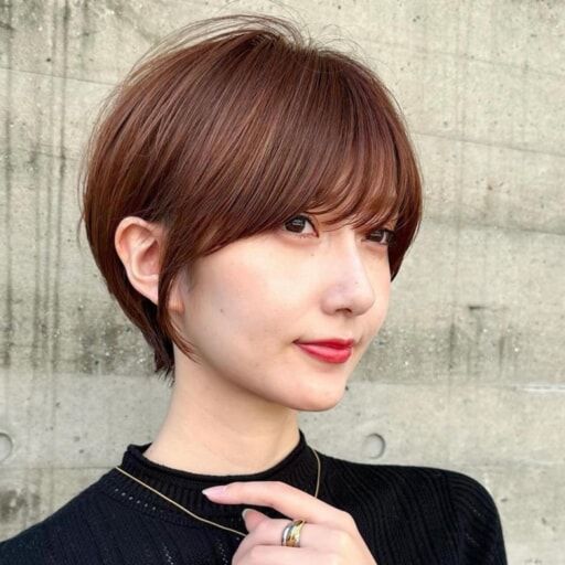 顔周りに軽くレイヤーを入れて上品さと軽さを両立させ、長さは耳下あたりの目安首元をすっきりと見せましょう。また、ヘアカラーは肌を明るく見せる効果のある暖色系の明るすぎず暗すぎないブラウン系がイチオシ。大人感をさり気なく底上げできます。
