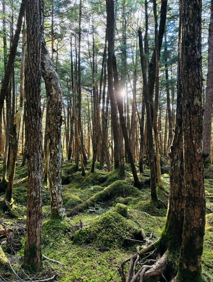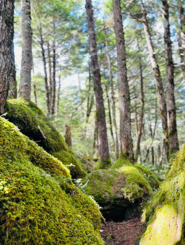実はこのにゅう山頂に向けて通る森は、日本の貴重なコケの森として認定されている北八ヶ岳の自然休養林なのです。一歩入るとそこからは、まるで映画の世界のように鮮やかな緑のコケに覆われた森林が広がっています。