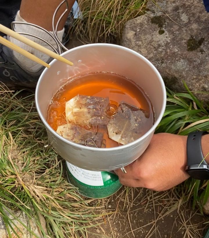 持ち寄った茶葉やガスでチャイラテを作ったり、焼きマシュマロを食べたり…こういった時間も、私が山で過ごす楽しみの一つです。