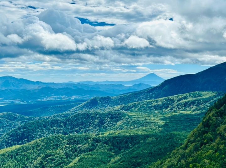 山頂はとても面積が小さい代わりに、360度見渡せるようになっているので、富士山と反対の方面には今まで歩いてきた森林や白駒の池も見ることができます。