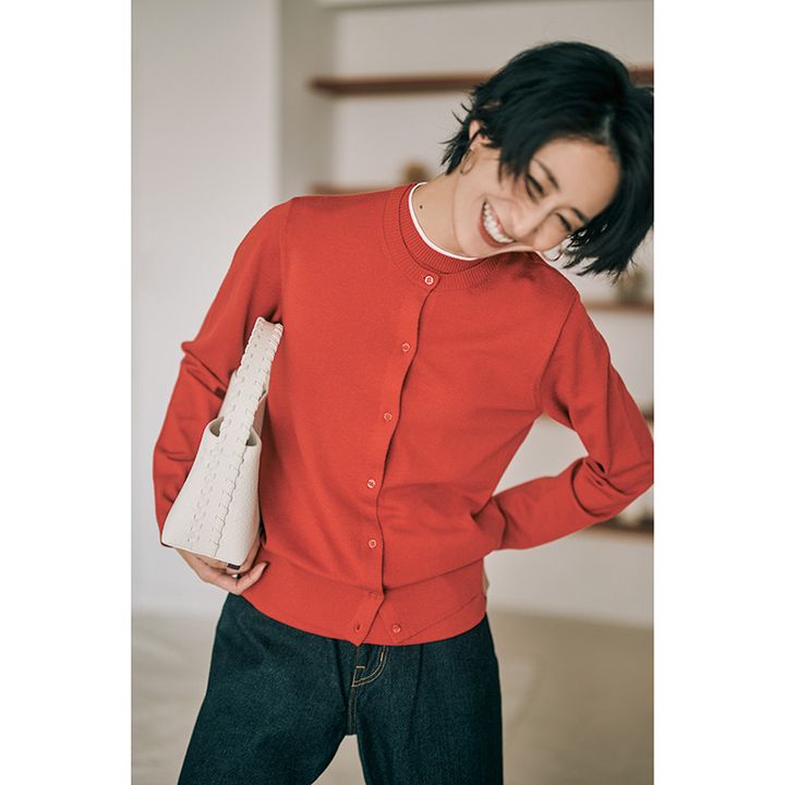 旬色【赤カーディガン】投入で秋らしく!白Tドッキングで簡単オシャレ