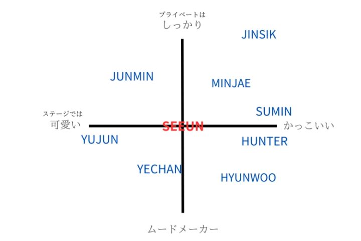 ほかのメンバーの多くは、MINJAEさんをしっかりの上のほうに書いていましたが、確かにしっかりしているイメージもありますが、やっぱり1番かっこいいと思っているので、かっこいいに寄せて書きました。