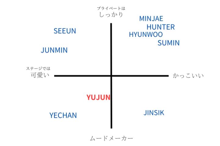 1番年上なのでしっかりしてそうなイメージがありますが、ファンの前でも愛嬌が多いし、もともと性格自体が愛嬌が多い性格なので、すごく可愛いと思っています。