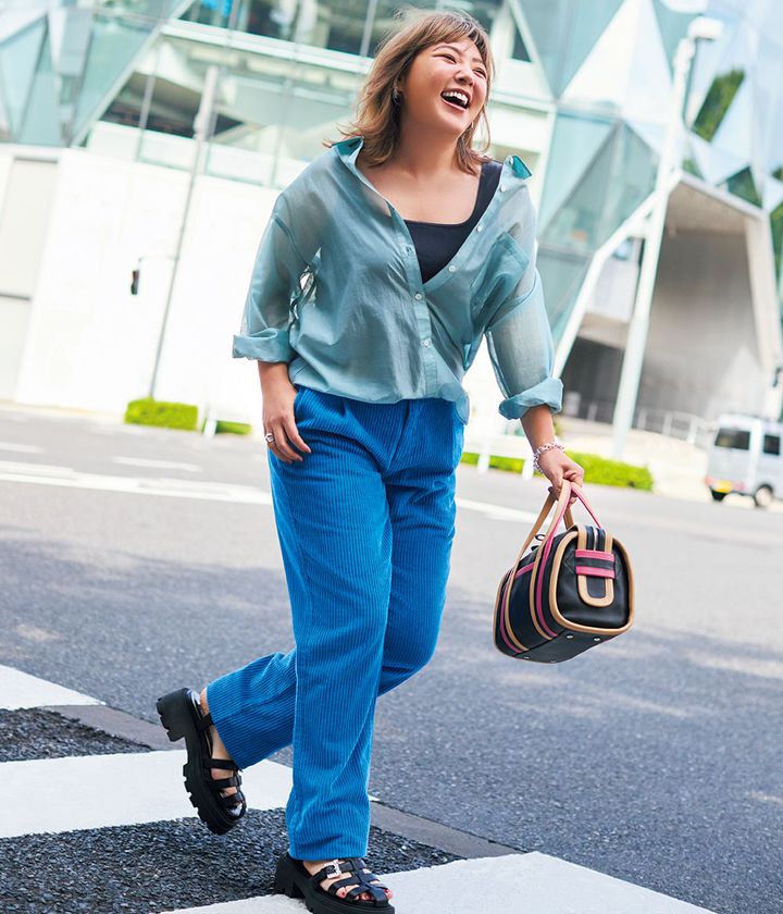 パンツ¥25,300(ブラバ/THIRD MAGAZINE)シャツ¥17,600(ストラ)タンクトップ¥6,600(ビューティー&ユース/ビューティー&ユース ユナイテッドアローズ 丸の内店)バッグ¥193,600(ピエール アルディ/ピエール アルディ 東京)サンダル¥174,900(セルジオ ロッシ/セルジオ ロッシ カスタマーサービス)ピアス¥110,000リング¥253,100〈ともにウノアエレ〉ブレスレット¥20,900〈ワンエーアールバイウノアエレ〉(すべてウノアエレ ジャパン)