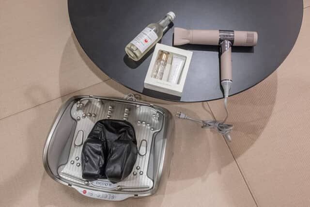マッサージャーやビネガードリンク、ボディローションとハンドクリーム、高機能ドライヤーに加え、シャワーブースには多機能シャワーヘッドを備えるなど、試してみたいものがそろっています。