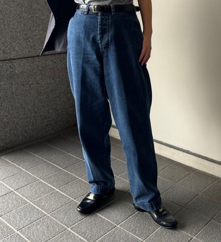 この秋更新したこちらのデニムが大正解。「BOWTE(バウト)」のアイテムは美しいテーラーメイドが特徴的なのですが、デニムもしかり。はいたときの形がめちゃくちゃ素敵なんです。展示会で試着させてもらい、スタイリストの加藤かすみさんと一緒に即購入を決めました。昔のラルフローレンを彷彿とさせるような絶妙なカラーリングとシルエットで、本当にどんなテンションのコーデにも合う! そして、なんかデニムスタイルがキマる(気がする)! 毎日はきたいぐらい気に入っています。一般的なデニムより少しお値段しますが、長くはいて味を出していこうと張り切り中。