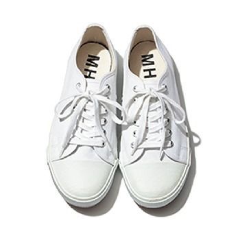 白スニーカー 16,500円/MHL. スタイリストたちにも人気のムーンスターに、MHL(マーガレット ハウエル)がスペシャルオーダーしたコットン素材のスニーカー。