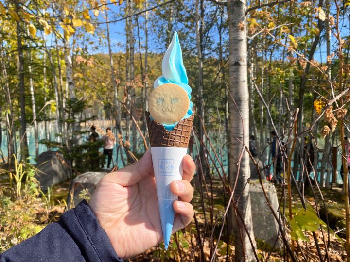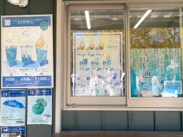 青い池のすぐそばには、スイーツやドリンク、フードを販売するショップがあります。どのメニューも“青い”カラーの、びっくりする品揃えです。
