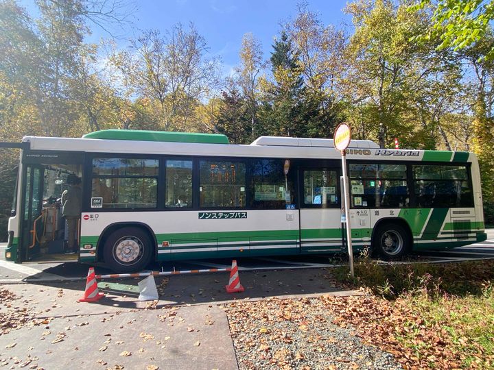青い池から出る帰りのバスは、到着したときのバス停の向かい側にあってわかりやすかったです。