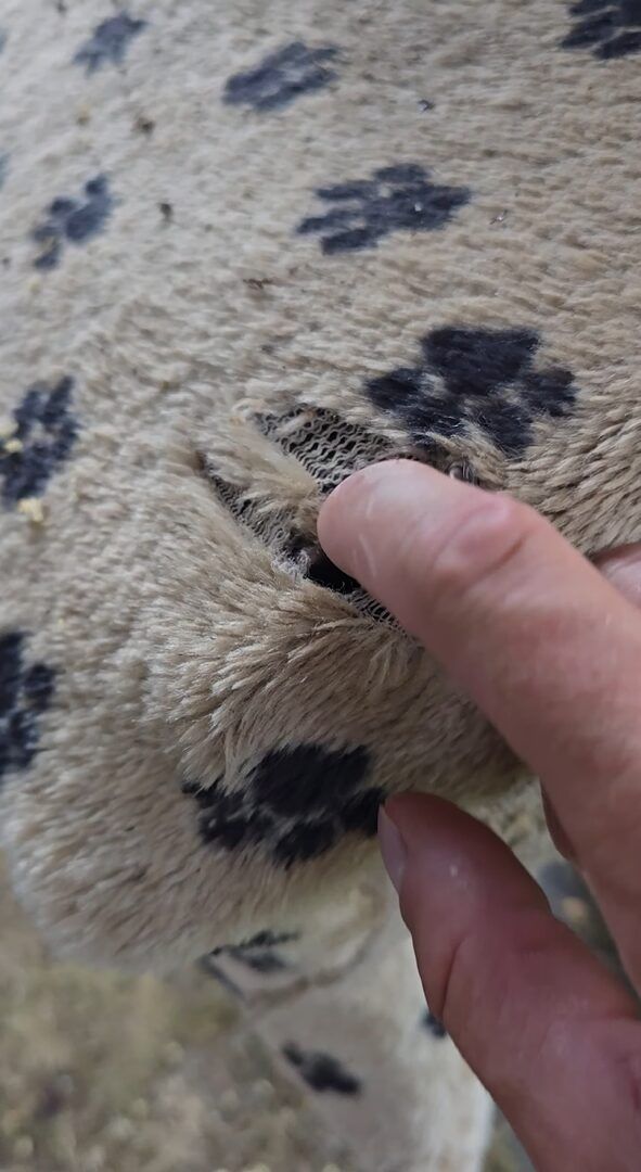 破れた布に開いている小さな穴。 撮影者さんが指を指し入れしてみると・・・