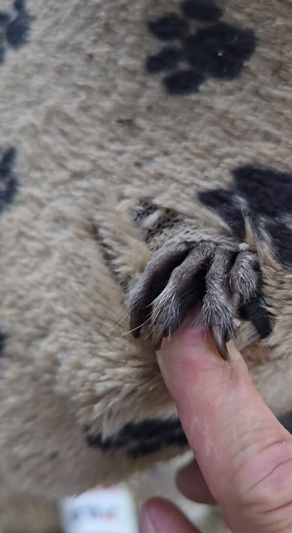 なんと、動物の小さなおててが出てきました! 鋭い爪が生えているのが確認できるそのおてては、どうやらイヌやネコのそれとはちがうようです。