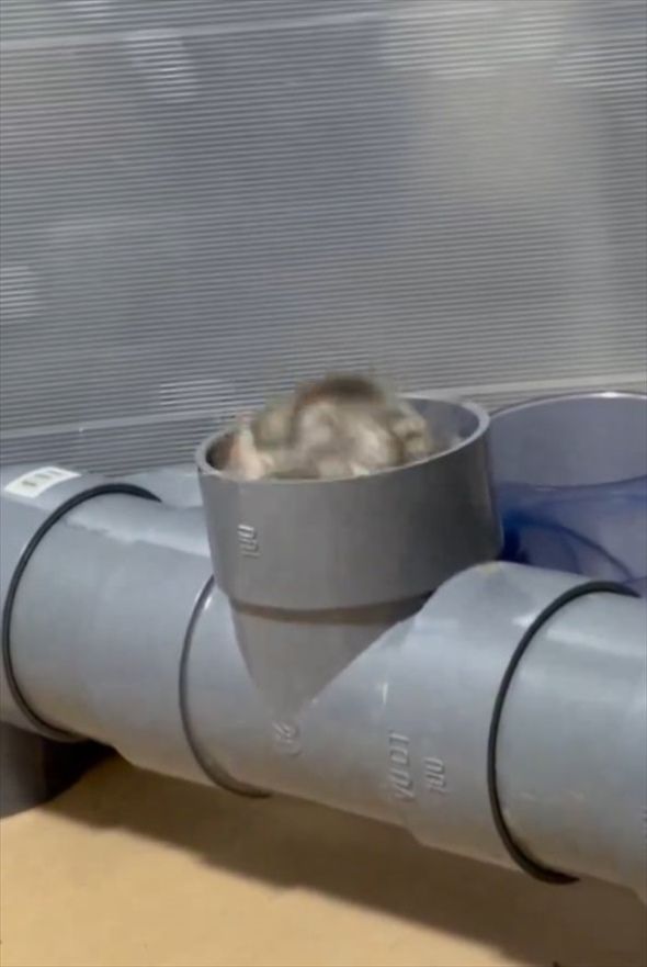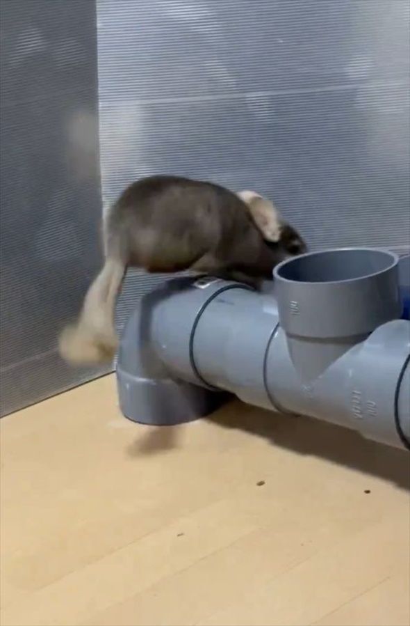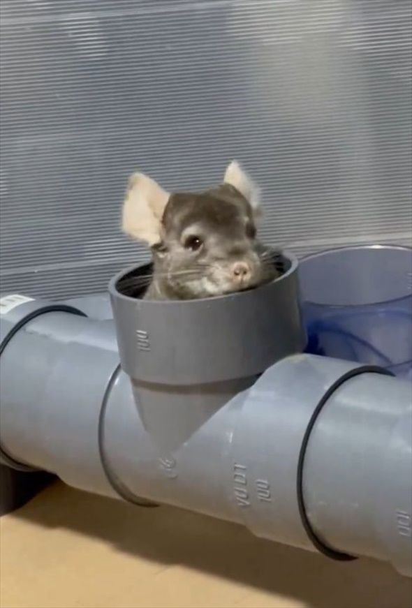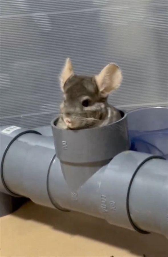 3. パイプのトンネルで遊ぶチンチラ。出たり入ったりする姿は楽しそうだし、かわいすぎる!