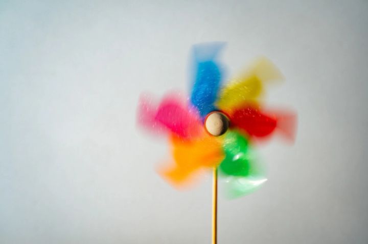 ・羽根の部分がレインボーカラーになっているキラキラの風車。