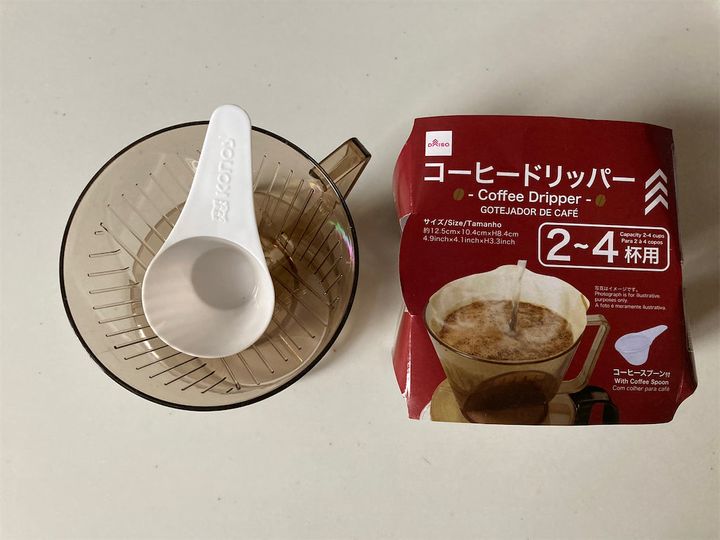 まずは、ヨーグルトの水切りをします。使用するコーヒードリッパーは、ダイソーの2~4杯用のものを使いました。