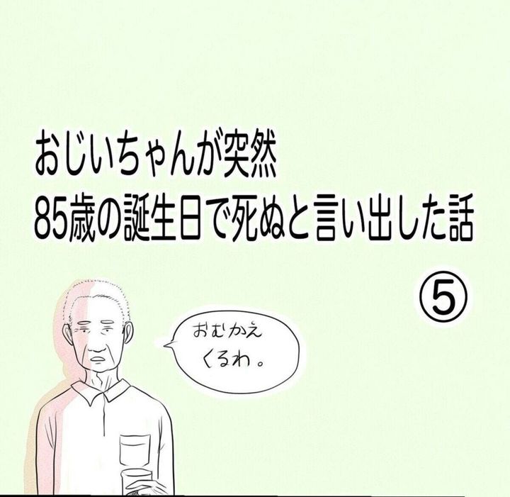 「85歳の誕生日にお迎えがくる」と言い張っていた認知症の祖父。とうとうその当日がやってきました。「そろそろお迎えがくる」という祖父に、祖母は「そんなものこない」ときっぱり否定します。