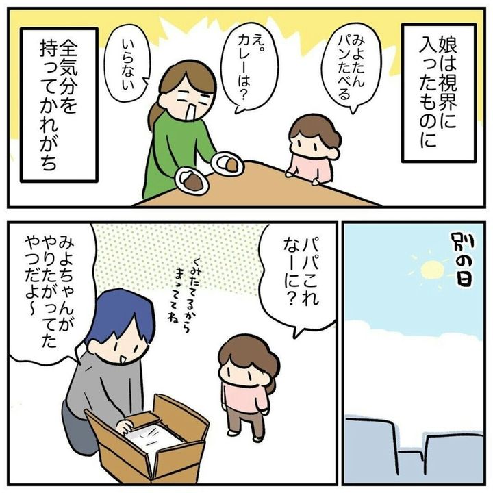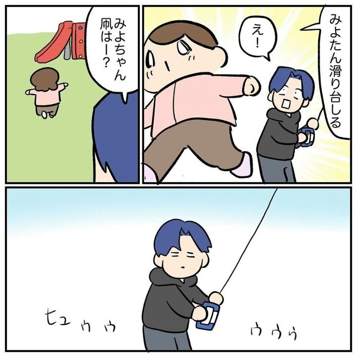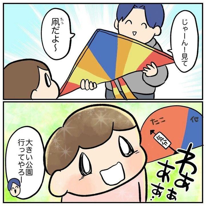 大人にはなかなか読むことができない、3歳児の思考回路。「さっきまでたこをやりたがってたのに!」というパパの心の叫びが聞こえてきそうです。