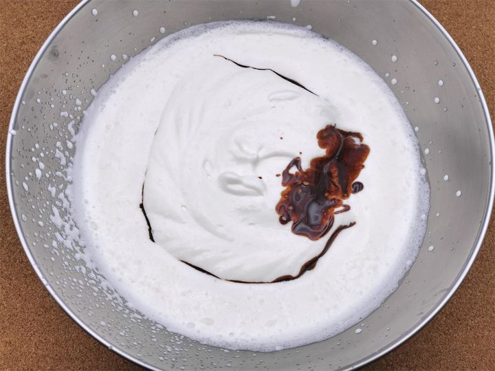 1. ボウルに生クリームと砂糖を入れ、角が立つまで泡立てます。