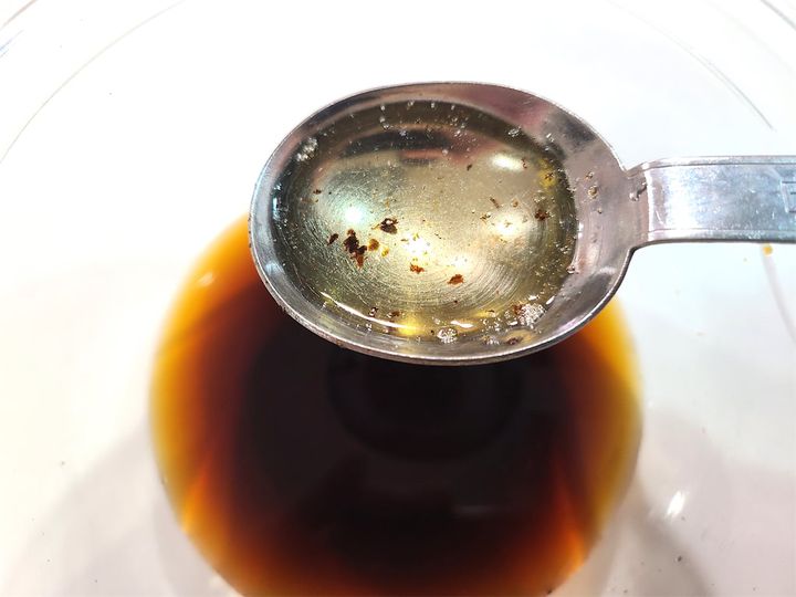 3. ボウルに2で作った香味油としょうゆ、みりん、酒を混ぜ合わせます。フライパンに残った香味油は拭き取るか別の料理のために取っておくといいですよ♪