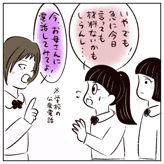 「いや、でも!急に今日言っても材料ないかもしらんし・・・」まるさんがそう言うと「今、お母さんに電話してみてよ!」とまさかの要求。