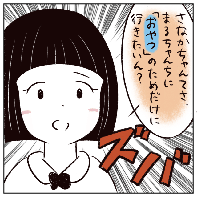 すると、隣で2人のやり取りを聞いていたヨーちゃんが「さなかちゃんてさ、まるちゃんちに『おやつ』のためだけに行きたいん?」とズバッと言いました。
