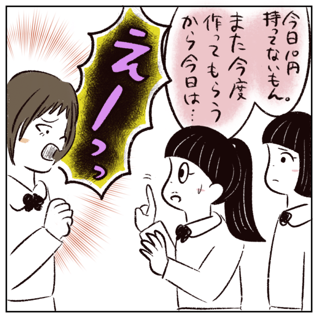 「今日10円持ってないもん。また今度作ってもらうから今日は・・・」と断ると、「えーっっ」と不満の声をあげるさなかちゃん。