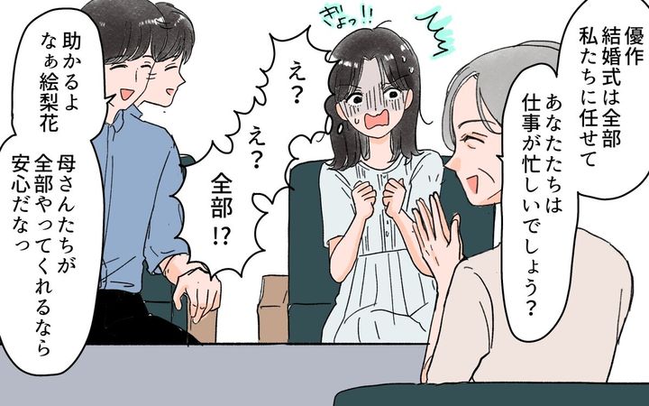 結局、結婚式の話は優作と義両親の間でどんどん進んでいき、絵梨花の意見が通ることはありませんでした。また、新居の話になり「この地域で長男は親と同居するのが当たり前」と父親が切り出すと…