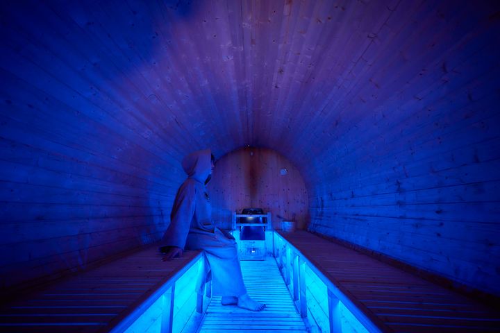 ホットプールでアクティブに楽しんだ後は、バレルサウナでパーティーの余韻に浸りながらゆったりと過ごすのがおすすめ。21時以降は、70℃設定の低温サウナになるので、ゆっくりじっくり体を温めることができます。また、室内は海をイメージしたやわらかなブルーのライトが点され、落ち着いた空間で、誰でも無理なく体を温めることができます。